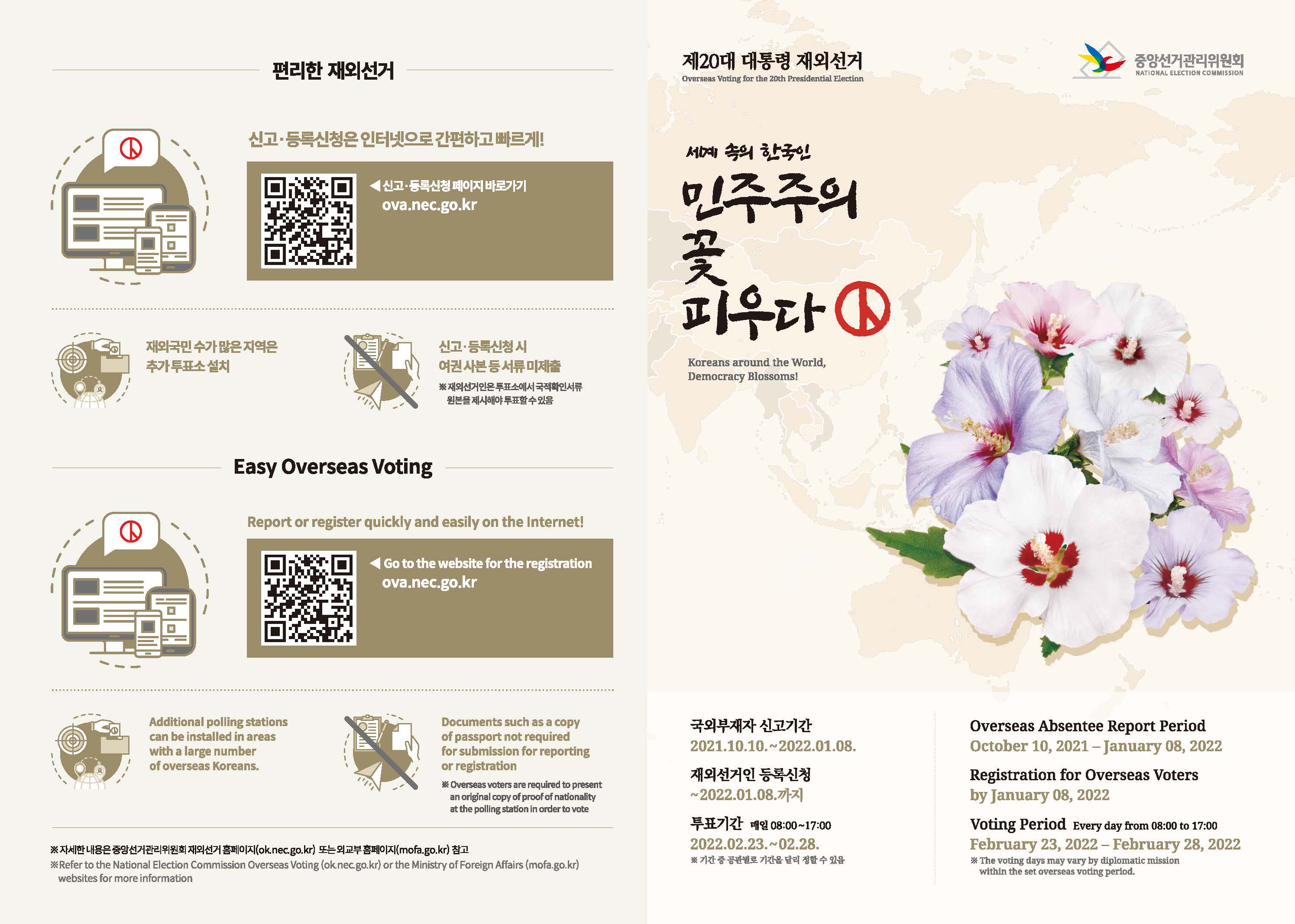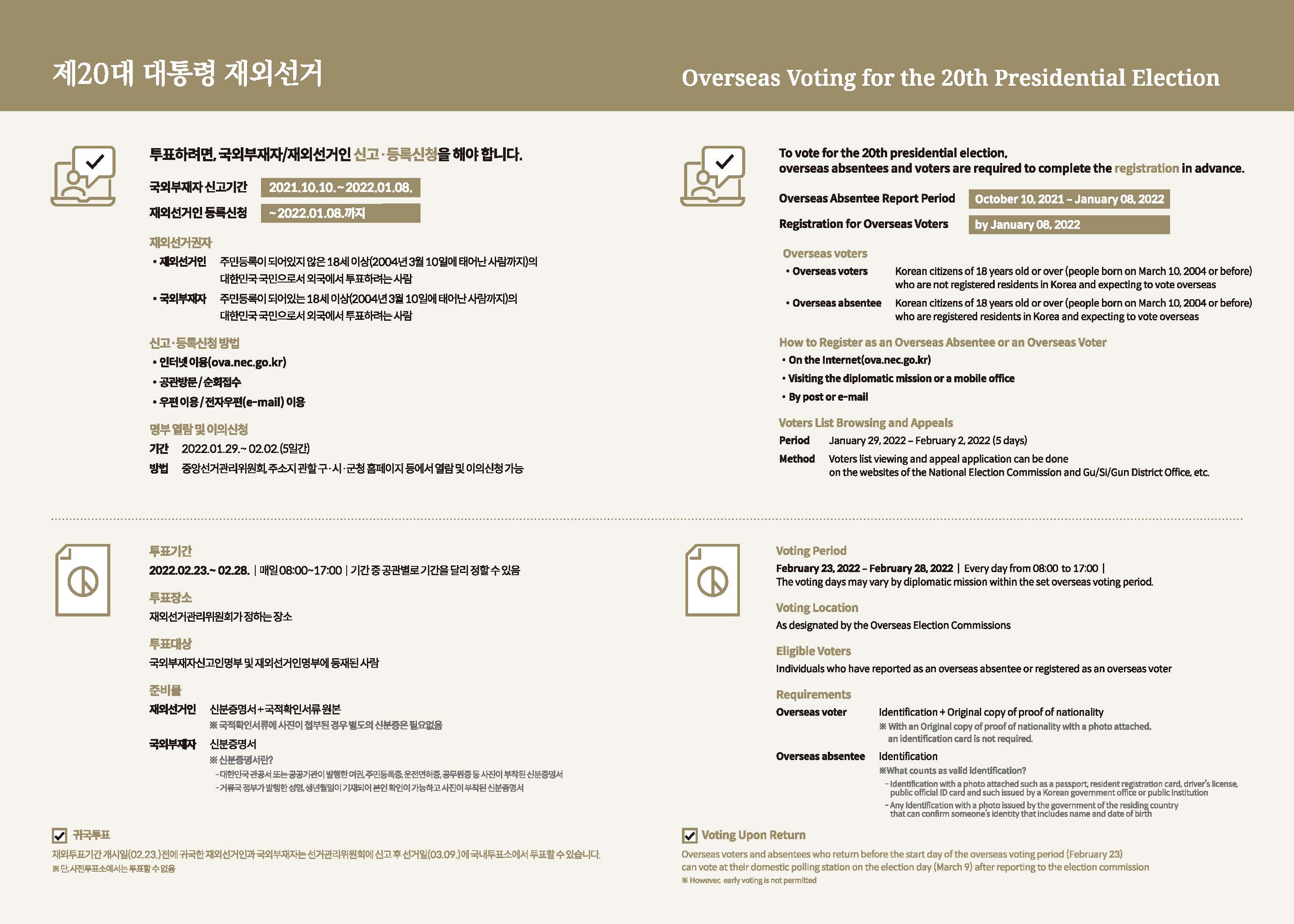 ※ Refer to the National Election Commission Overseas Voting(ok.nec.go.kr) or the Ministry of Foreign Affairs(mofa.go.kr) websites for more information