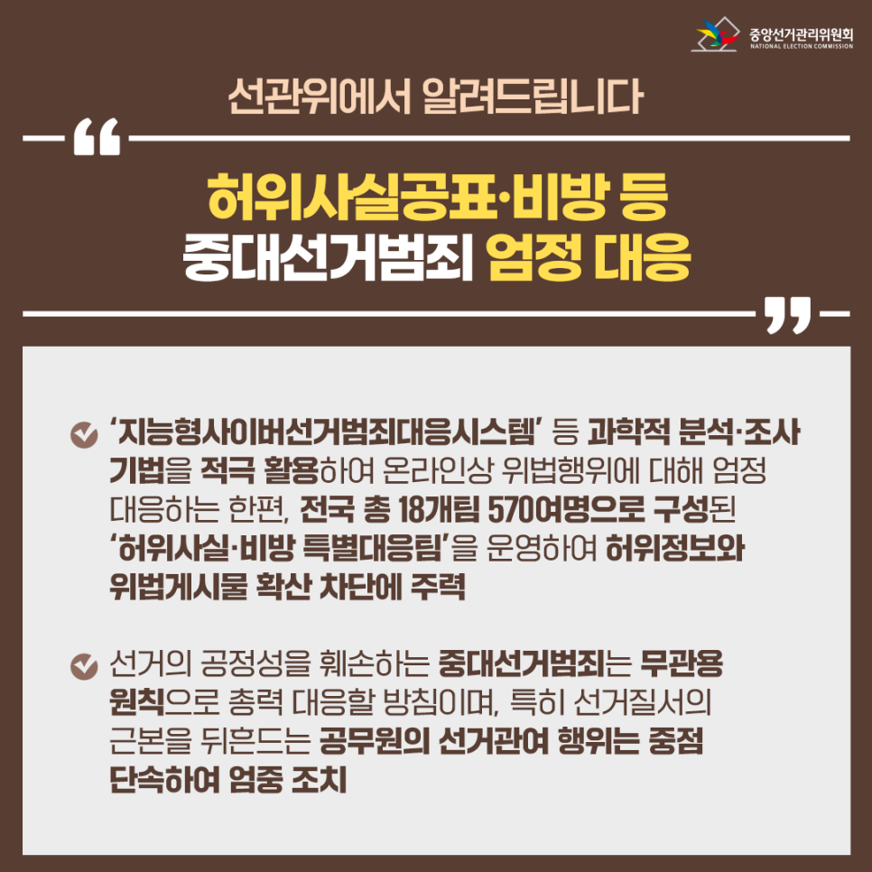 허위사실공표·비방 등 중대선거범죄 엄정 대응