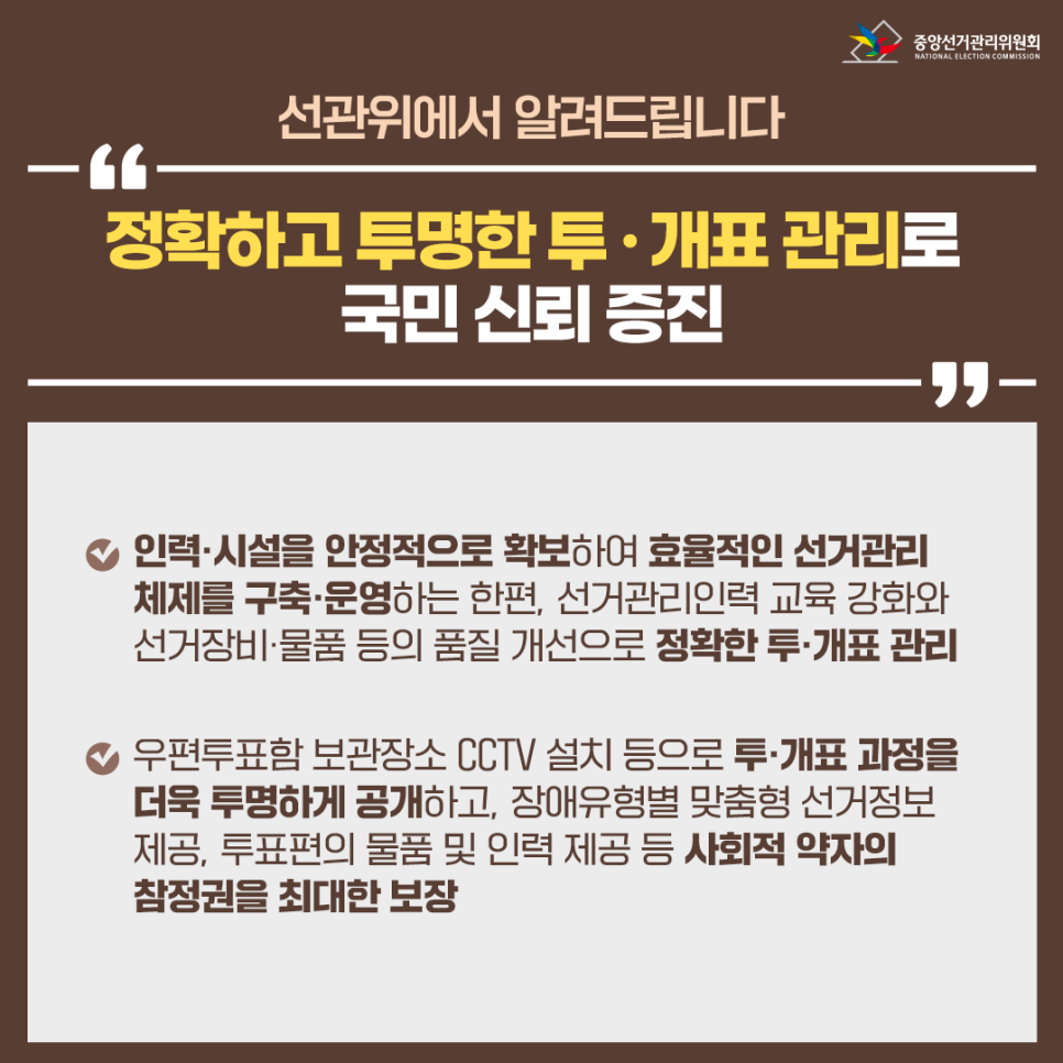 정확하고 투명한 투‧개표 관리로 국민 신뢰 증진