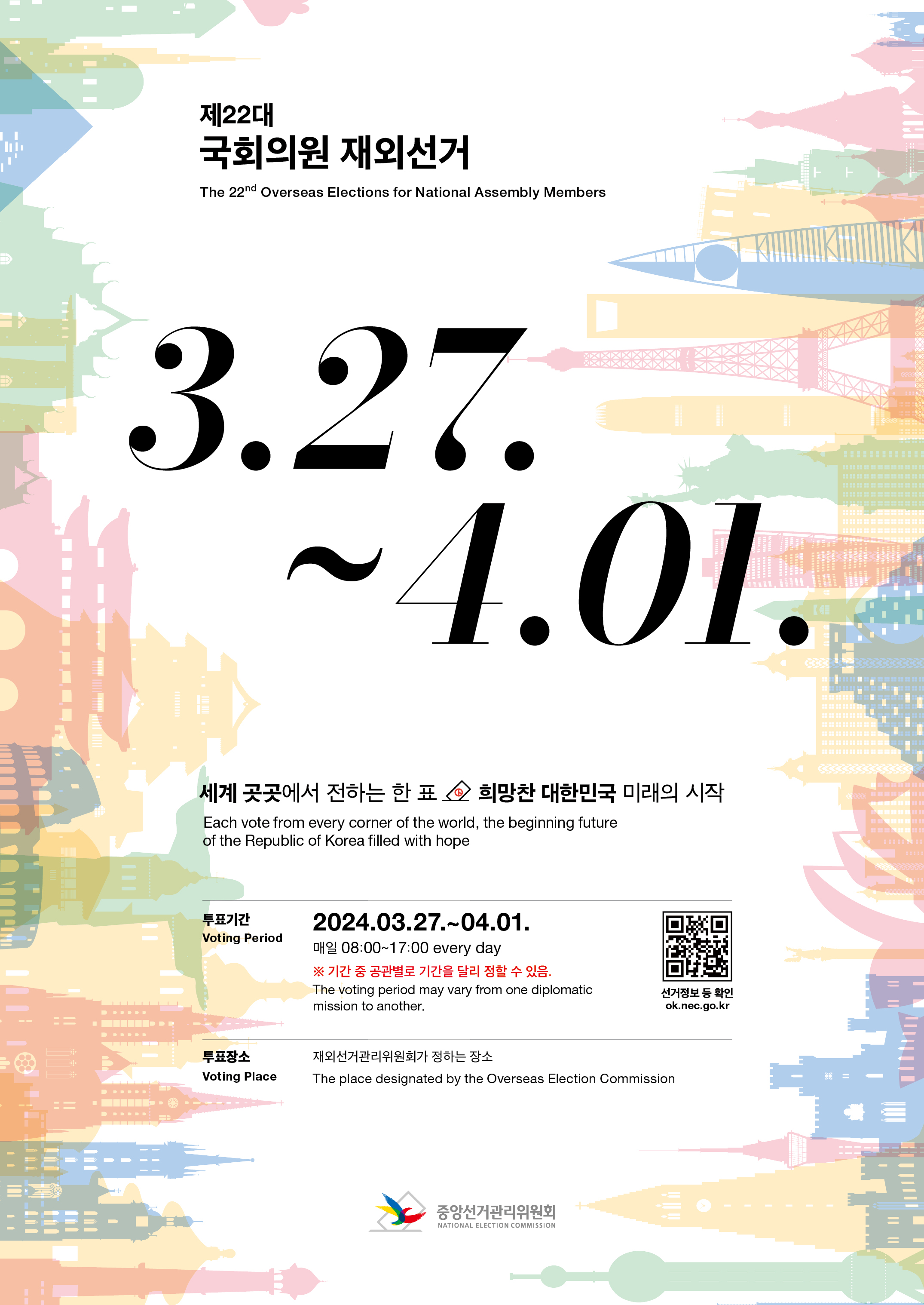 For further information, please visit the websites for the Overseas Elections of the National Election Commission of the Republic of Korea (ok.nec.go.kr), Ministry of Foreign Affairs (mofa.go.kr), and Overseas Koreans Agency (oka.go.kr).