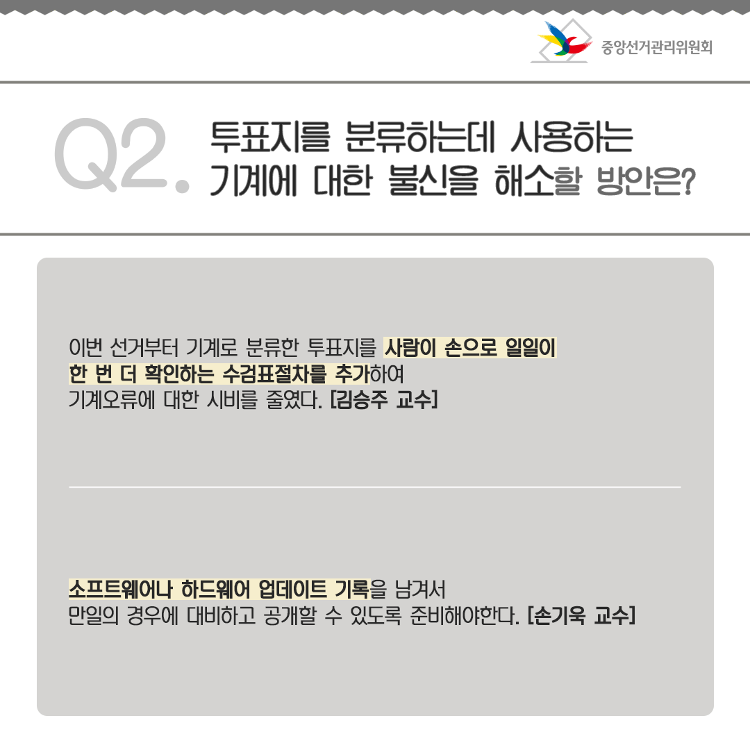 Q2. 투표지를 분류하는데 사용하는 기계에 대한 불신을 해소할 방안은?
