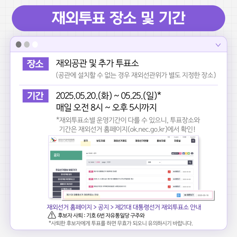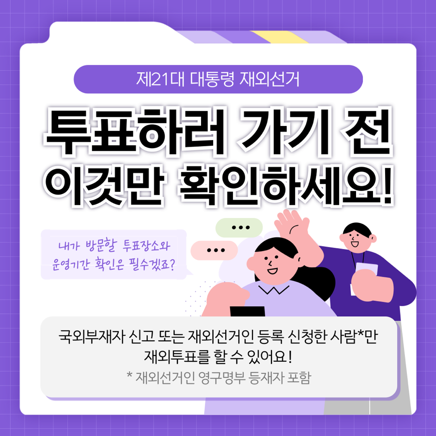 [제21대 대통령 재외선거] 투표하러 가기 전 이것만 확인하세요!