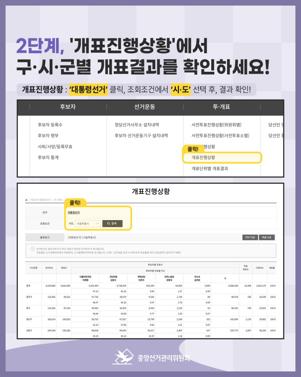[제21대 대통령선거] 개표 진행률과 지역별 개표결과 어디서 확인할까?