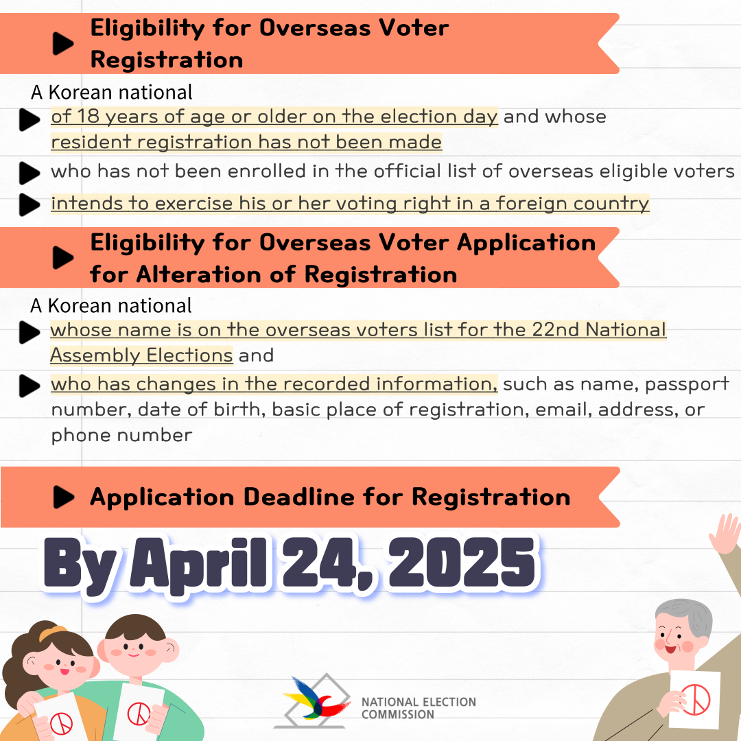 ※ The application form can be downloaded from the Overseas Election website (https://ok.nec.go.kr/) under "Announcement Archives”