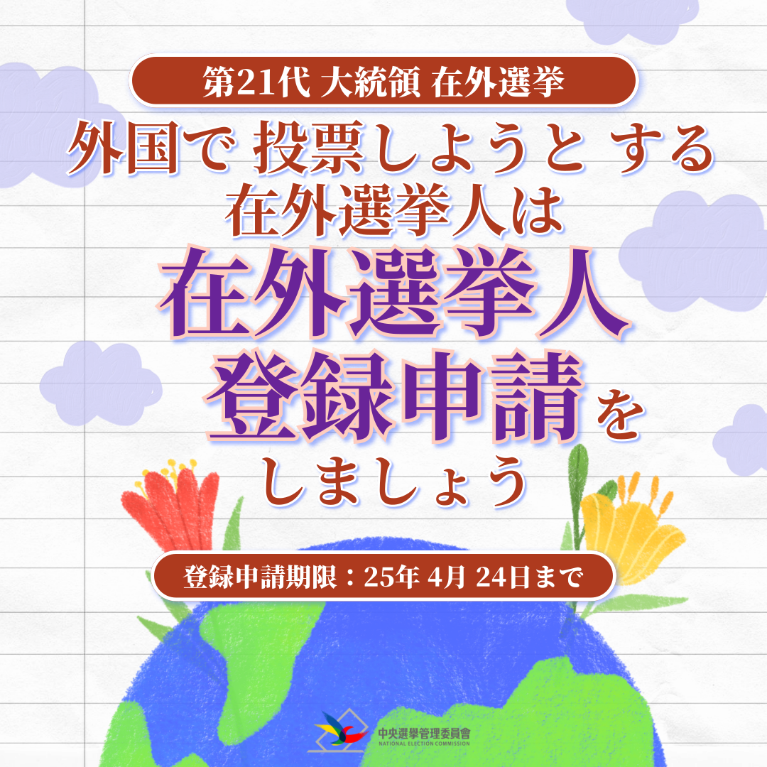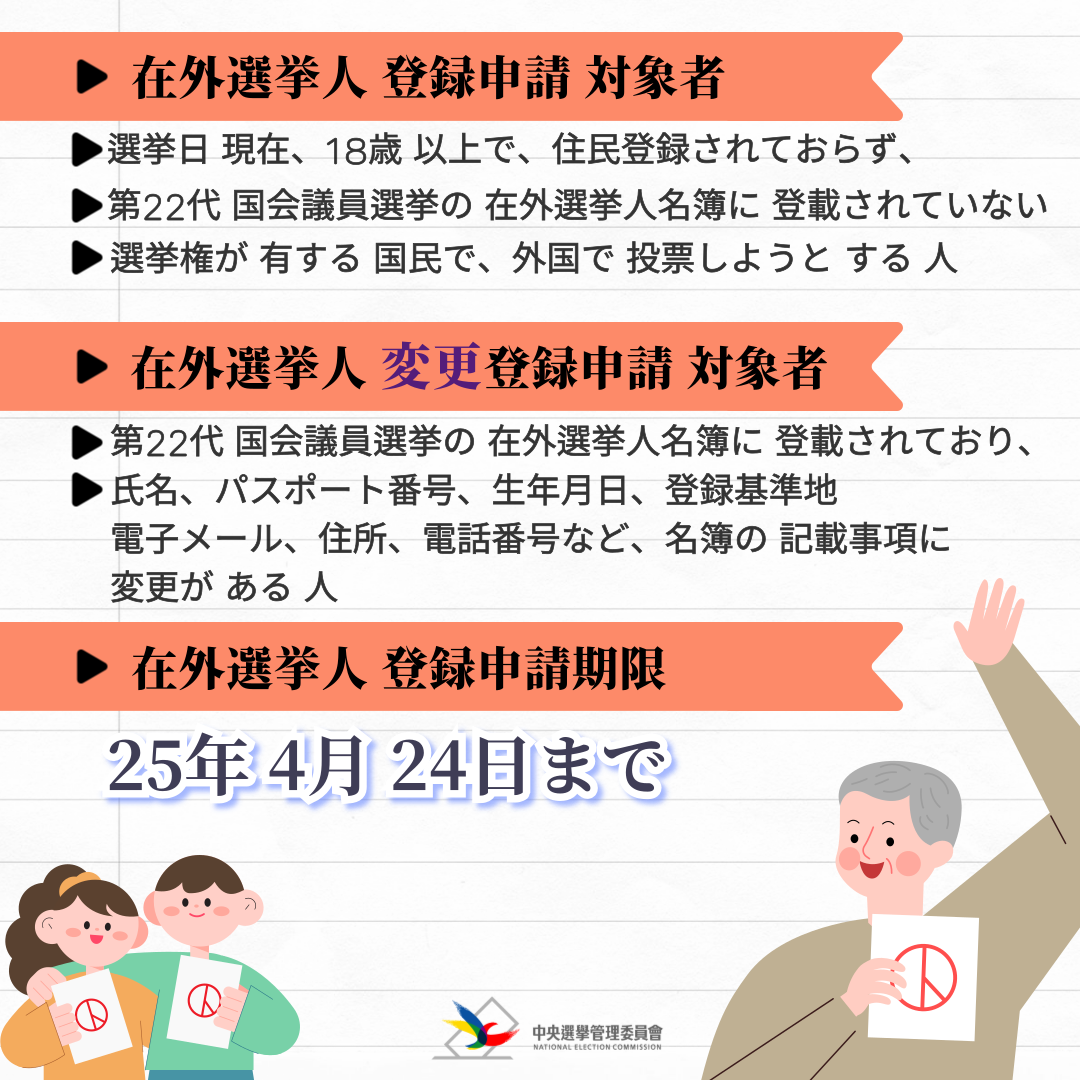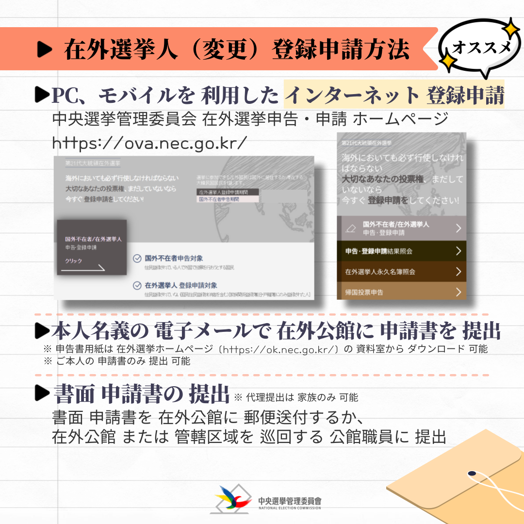 (第21代 大統領在外選挙) 在外選挙人 登録申請
