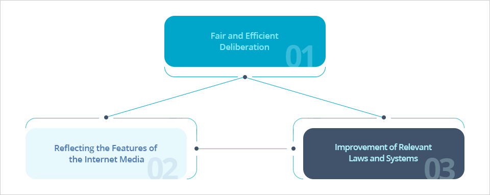 According to Article 8-5 Paragraph (8) of the Public Official Election Act, the Internet Election News Deliberation Commission operates a qualified deliberation team, a deliberation management team, and a deliberation support team to handle deliberation duties.