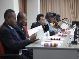 Mali and Papua New Guinea election officials list to a lecture