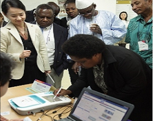 Election officials from Mali and Papua New Guinea participate in demonstration of touch-screen voting |