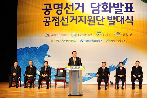 Statement on fairness in the inaugural nationwide elections for Heads of Cooperatives The National Election Commission (NEC), the Ministry of Agriculture, Food and Rural Affairs (MAFRA), and the Ministry of Oceans and Fisheries (MOF) released a joint statement to the nation at the Mapo Art Center on January 29, around 40 days before the first nationwide elections for Heads of Cooperatives. In the statement, they asked for people’s active participation in the voting and emphasized the importance of fair and clean elections. Among the participants were the Secretary General of the NEC Mr. Kim Yong-hi, Minister of MAFRA Lee Dong-pil and the Head of the Korean Forest Service Mr Jung Yung-hun. They were also joined by Mr. Jung Yung-hun, a Senior Officer at MOF, Mr. Choi Won-byung, the Chairperson of the Agriculture Cooperative, Mr. Lee Jong-gu, the Chairperson of the Fisheries Cooperative, and Mr. Lee Suk-hyung, the Chairperson of the Forest Cooperative. Secretary General Kim Yong-Hi delivered the joint announcement and Minister Lee Dong-pil said a few words about fair elections on behalf of the government. The Secretary General mentioned that the elections for Heads of Cooperatives are equivalent to those for public officials because how these organizations are run has a significant impact on the local economy and the people’s daily lives. In this regard, he requested that voters closely examine candidates’ election promises and pledges before casting their votes, adding that it is both a right and an obligation for the member of the cooperatives to have an interest and participate in the upcoming elections. In addition, he promised the NEC would dedicate itself to both eradicating ‘election bribery’ to meet the needs of the times and people’s aspirations, and managing the elections on the basis of strict neutrality and fairness, which will lead to a new era of clean and fair election. He also asked candidates, members of the cooperatives, and the general public to have a strong interest in the election and to cooperate with the NEC for the mutual development of the members and cooperatives. The MAFRA Minister asked the ‘Fair Election Supporters’, the group monitoring the elections, to commit themselves to marking the first year of fair elections for cooperatives’ heads by rooting out conventional irrationalities and irregularities, which would be a stepping stone for agriculture communities to go forward with new hope. Along with today’s announcement, ‘Fair Election Supporters’, consisting of around 1800 members from 244 regional election commissions across the nation, held a launch ceremony to gear up for a crack-down on ‘election bribery.’ As holidays such as Lunar New Year’s Day and the First Full Moon of the year are approaching at the same time as Election Day, the election authority is planning to reinforce its watch-dog activities. It will deploy, when necessary, up to 2,000 investigative staff in addition to the support group already on the ground. This means that there may be up to 4,700 staff, including public officials from the NEC, monitoring for any violations of election law. |
