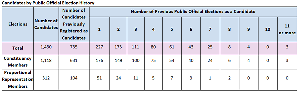 • Number of Political Parties Fielding Candidates in these Elections: 41 (out of 51 registered political parties as of March 27, 2020) • Details of Political Parties Fielding Candidates: 21 political parties fielding candidates in elections for constituency members, 35 fielding candidates in elections for proportional representation members elections • 1,118 Candidates registered for elections for constituency members, 312 candidates registered for elections for proportional representation member elections