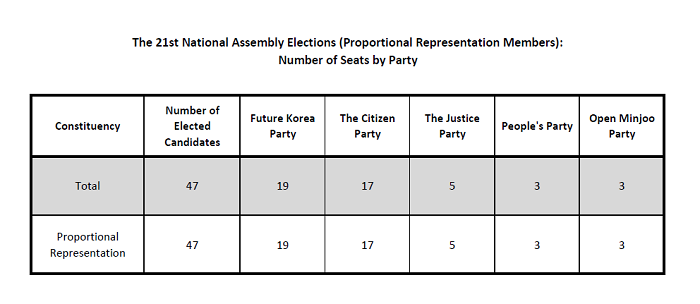 | 21st National Assembly Elected Candidate Statistics (Proportional Representation Members) |