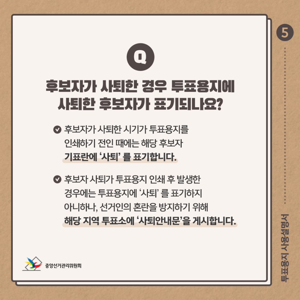 Q. 후보자가 사퇴한 경우 투표용지에 사퇴한 후보자가 표기되나요?