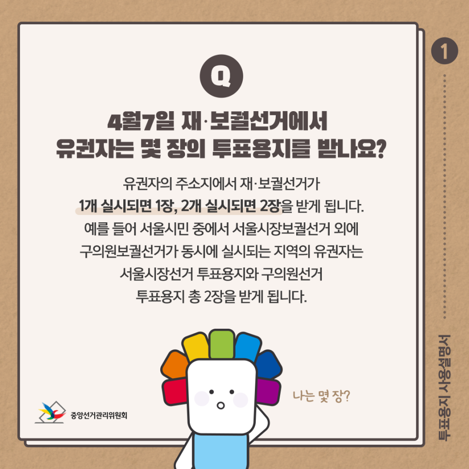 Q. 4월 7일 재·보궐선거에서 유권자는 몇 장의 투표용지를 받나요?