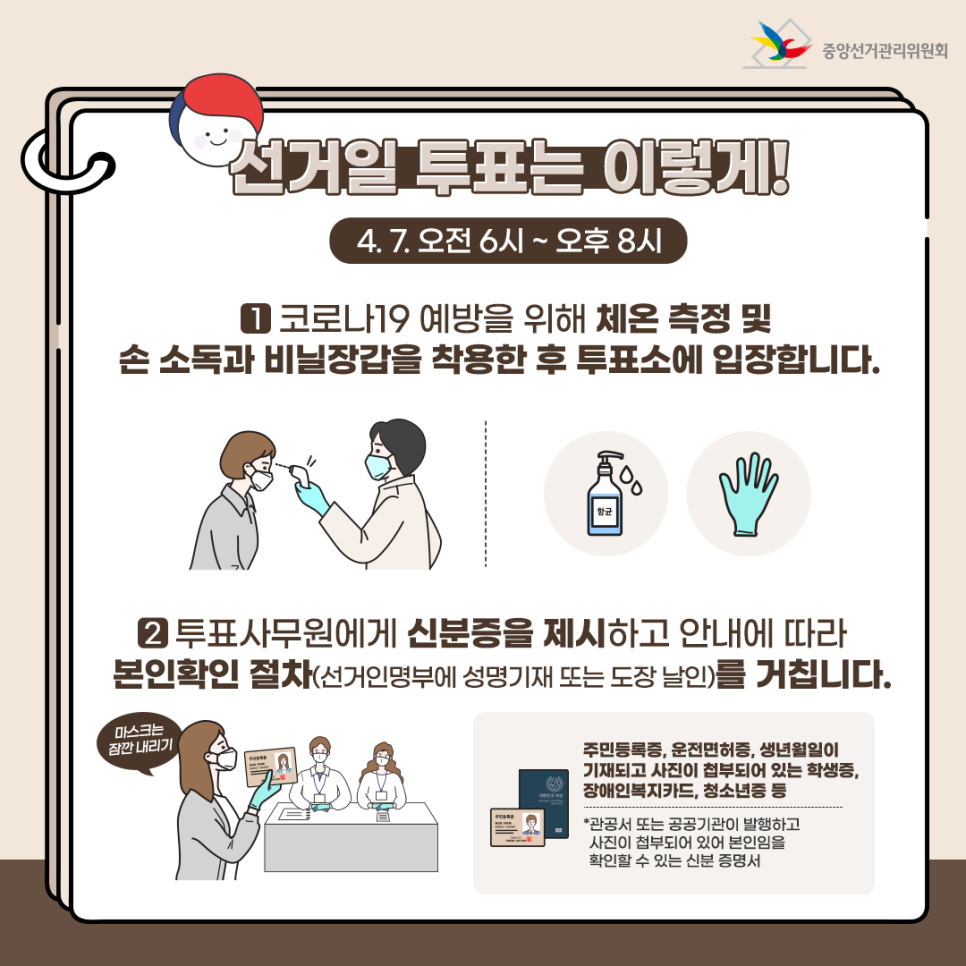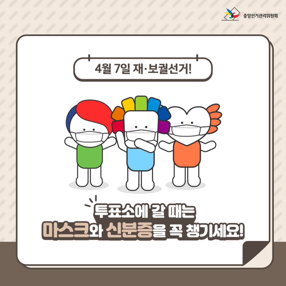 4월 7일 재·보궐선거 투표소에 갈 때는 마스크와 신분증을 꼭 챙기세요!