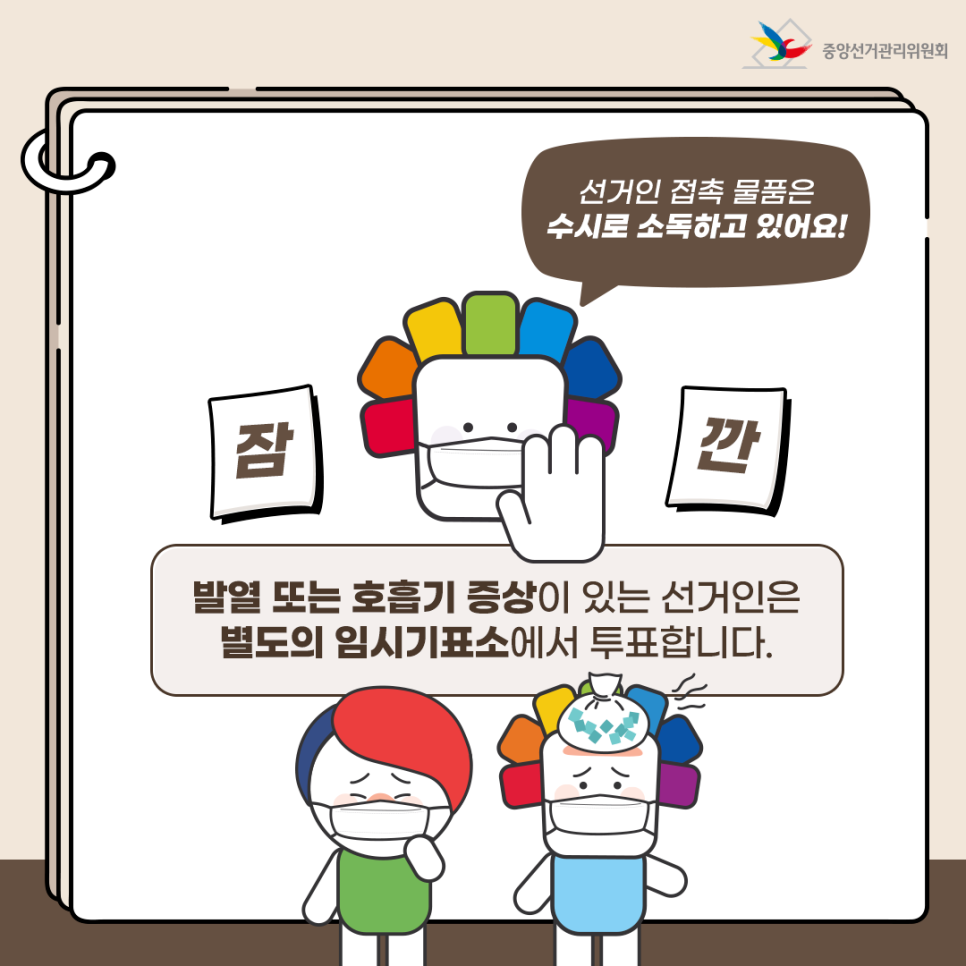 잠깐! 발열 또는 호흡기 증상이 있는 선거인은 별도의 임시기표소에서 투표합니다.