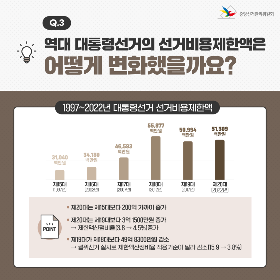 Q3. 역대 대통령선거 선거비용제한액은 어떻게 변화했을까요?