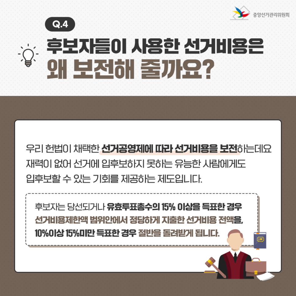 Q4. 후보자들이 사용한 선거비용 왜 보전해 줄까요?