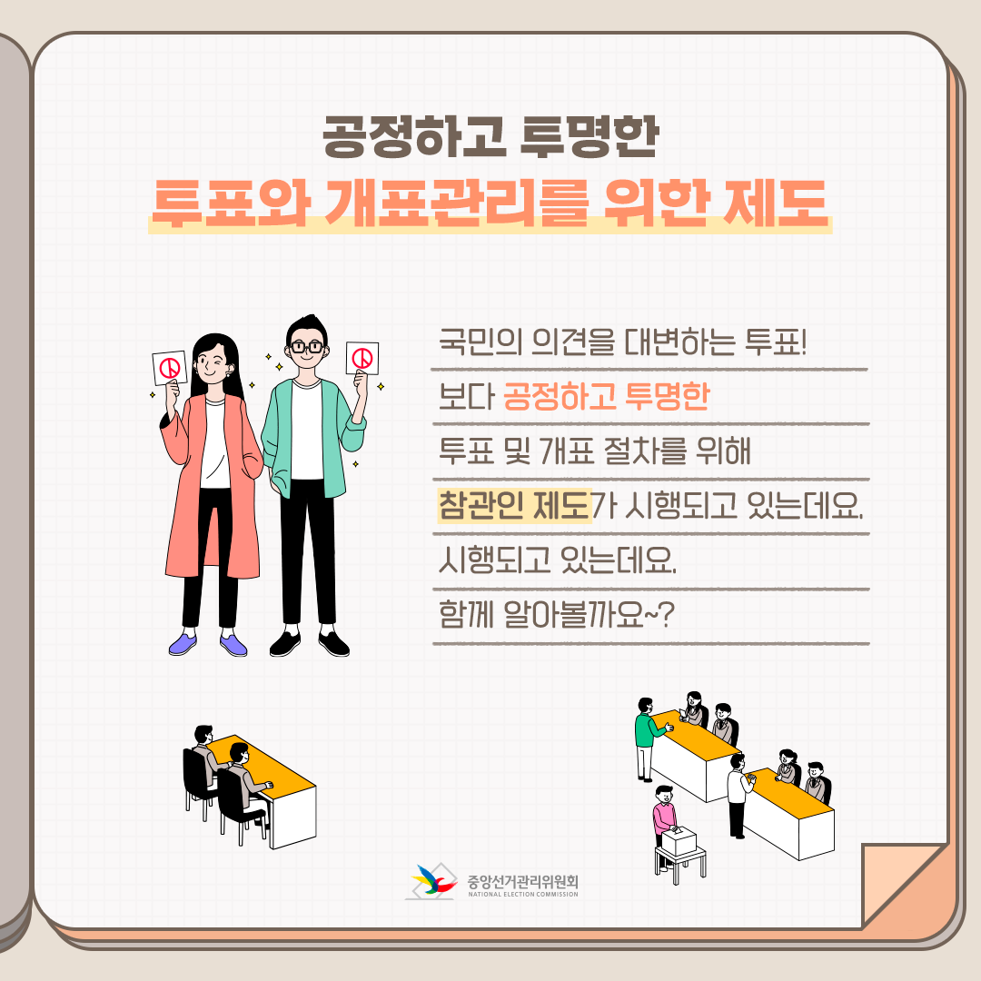 오늘은 그 중 투표 및 개표 상황을 참관하는 참관인 제도에 대해 소개해드리겠습니다.