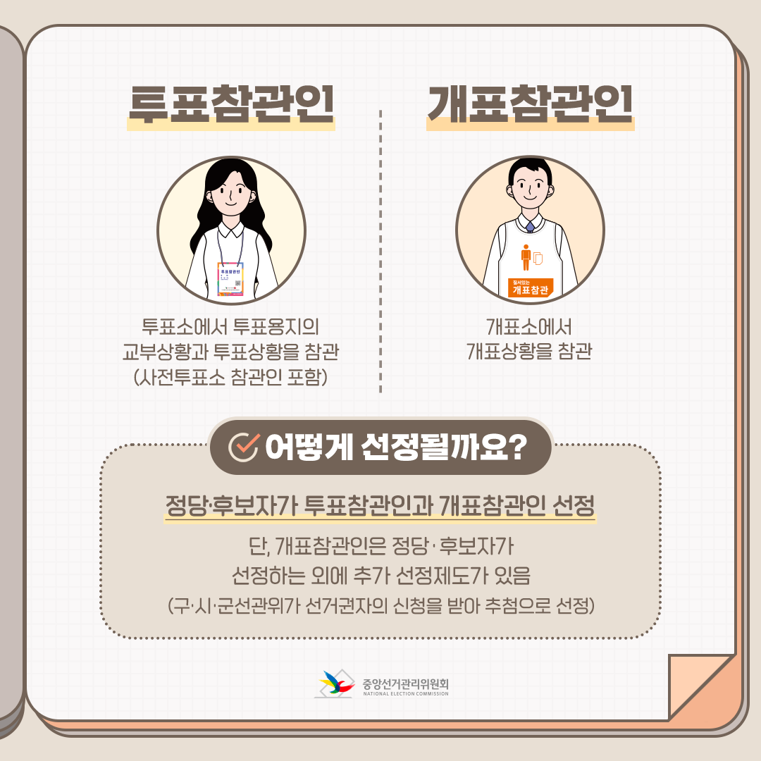 단, 개표참관인은 정당·후보자가 선정하는 외에 추가 선정제도가 있음