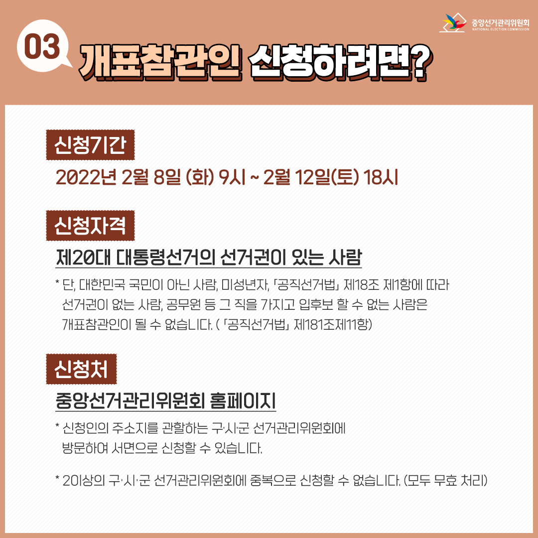 ◦ 신청처 : 중앙선거관리위원회 홈페이지