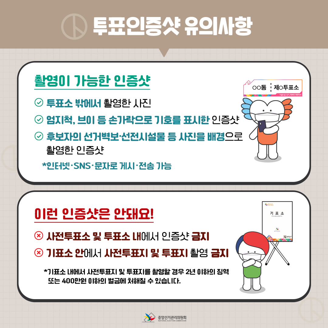 ❌ 사전투표소 및 투표소 내에서 인증샷 금지