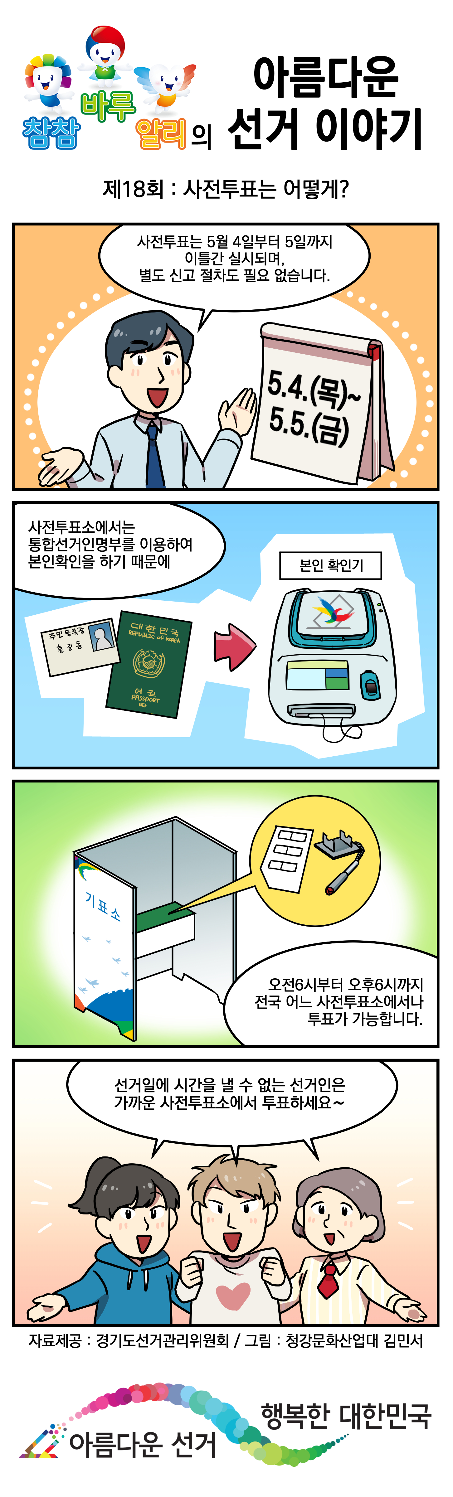 선거일에 시간을 낼 수 없는 선거인은 가까운 사전투표소에서 투표하세요~
