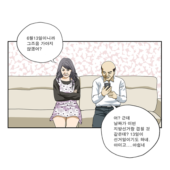 무슨소리야~ 지방선거는 우리 ㄹ동네 살림이 걸린 일이잖아. 우리 애랑 여보를 위해서 꼭 투표를 해야지..…