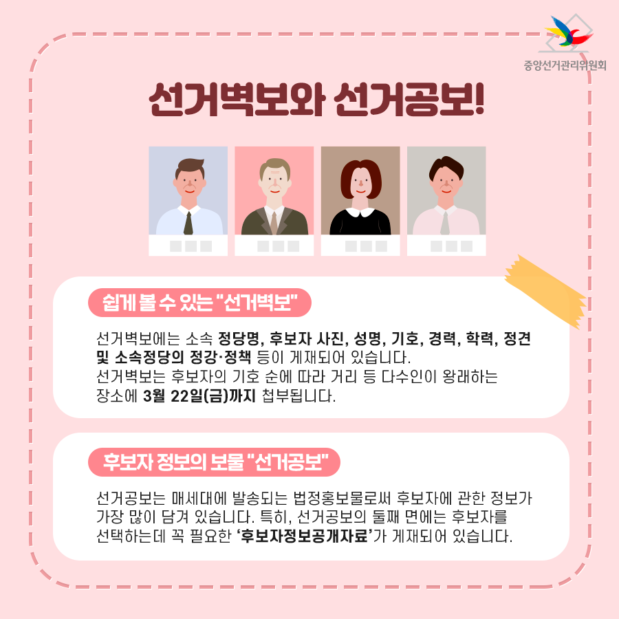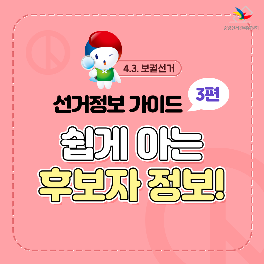 중앙선거관리위원회 4.3. 보궐선거 선거정보 가이드 3편 쉽게 아는 후보자 정보! 선거벽보와 선거공보!