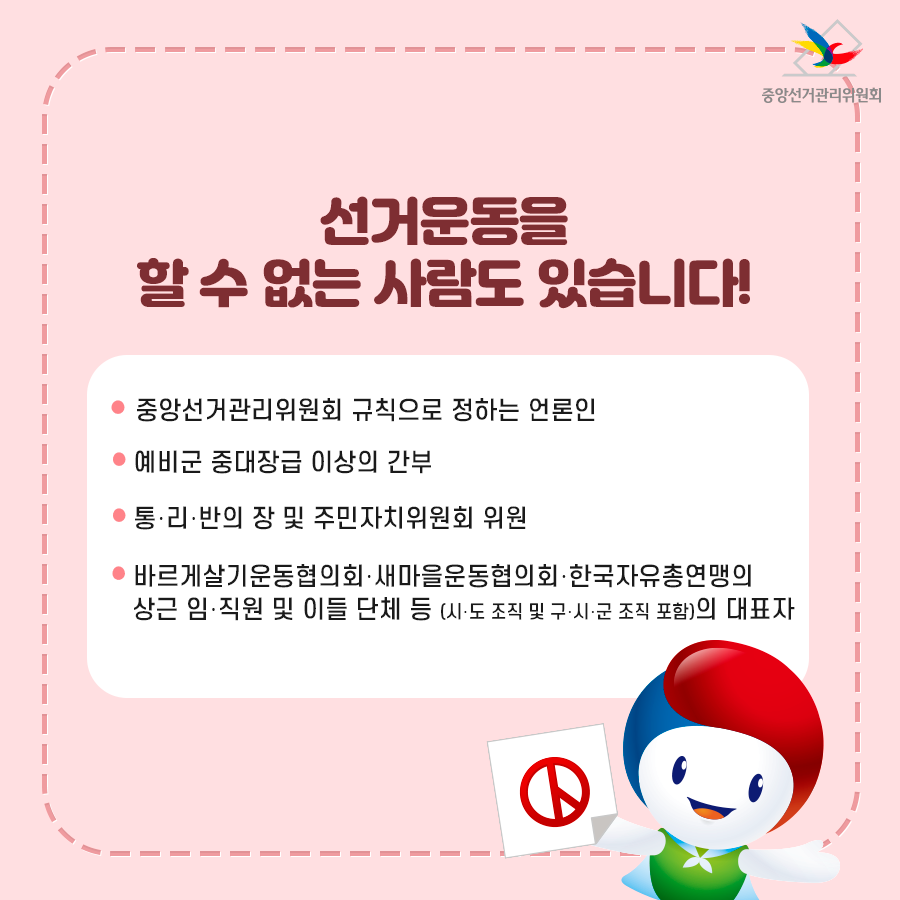 대한민국 국민이 아닌자 ※ 다만, 선거권이 있는 외국인은 선거운동을 할 수 있습니다.
