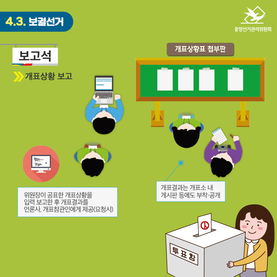 위원장이 공표한 개표상황을 입력 보고한 후 개표결과를 언론사, 개표참관인에게 제공(요청시)