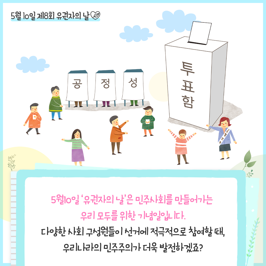 5월 10일 '유권자의 날'은 민주사회를 만들어가는 우리 모두를 위한 기념일입니다.