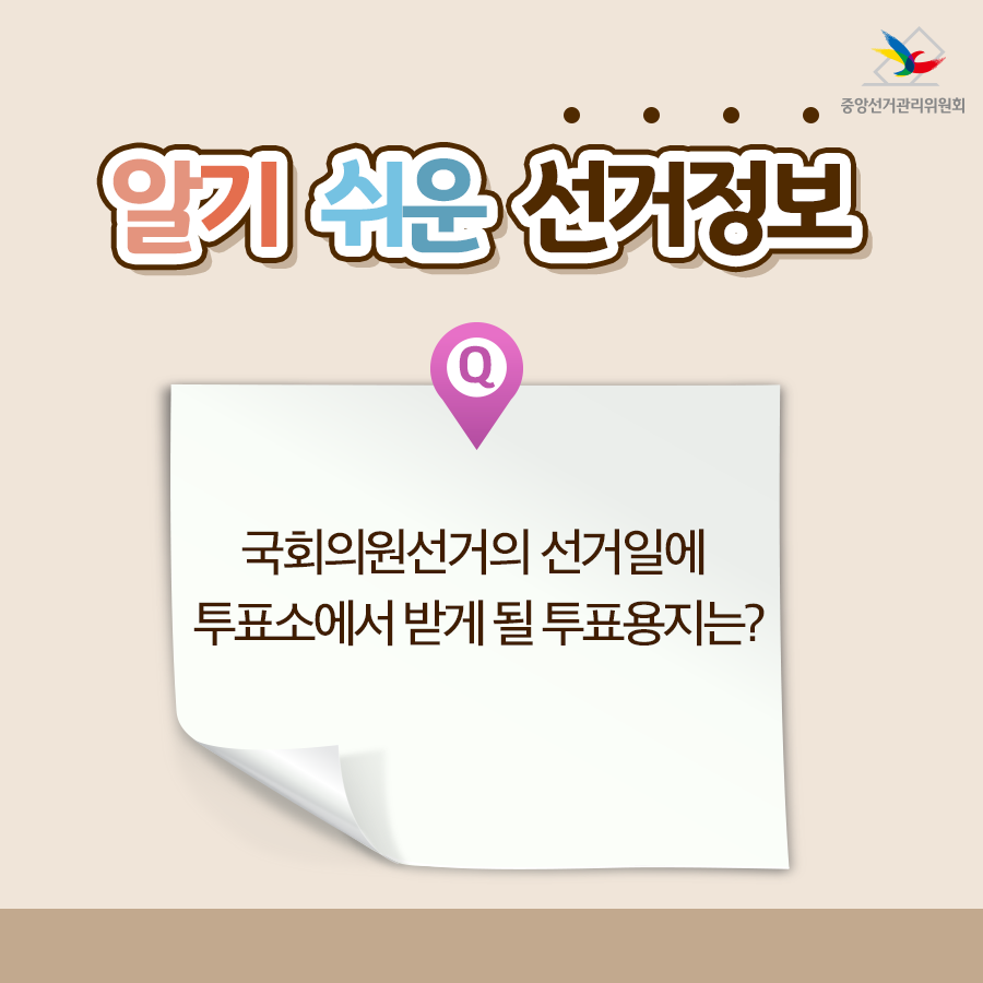 국회의원선거의 선거일에 투표소에서 받게 될 투표용지는?