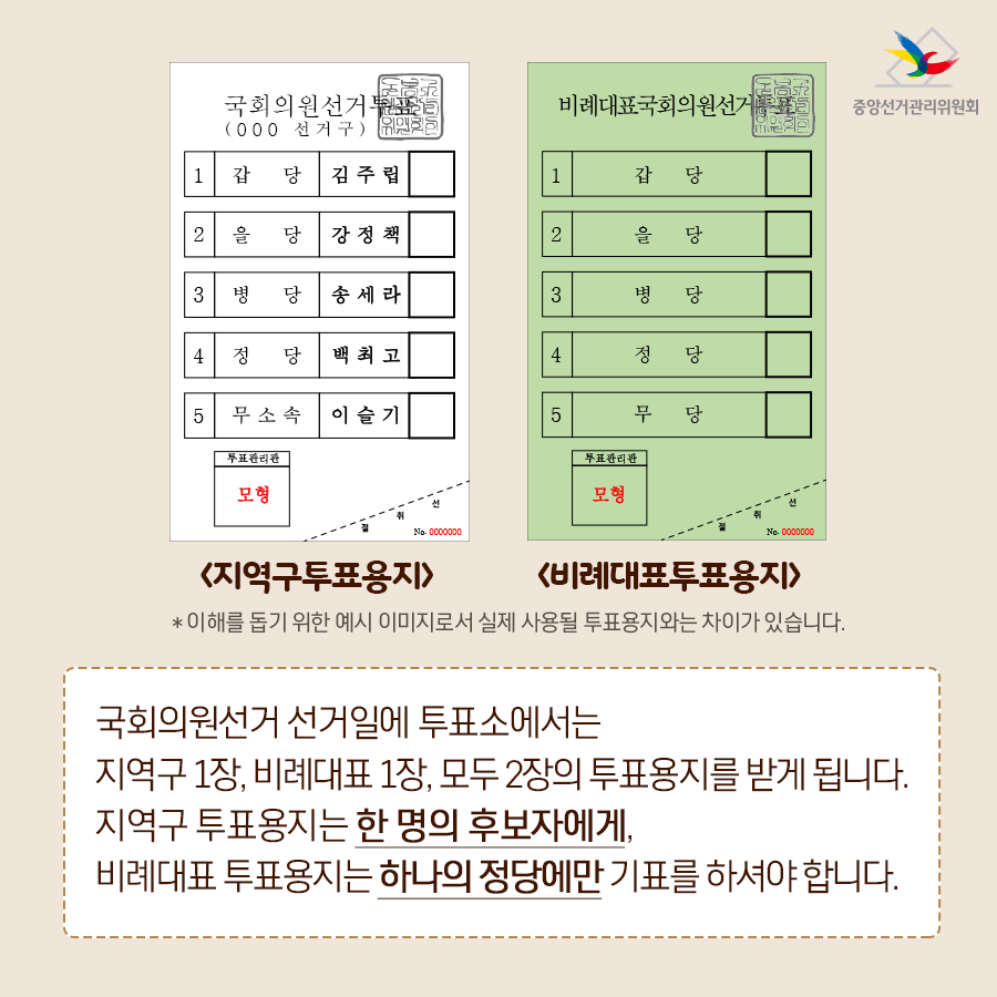 지역구 1장, 비례대표 1장,
