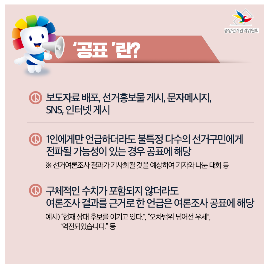 보도자료 배포, 선거홍보물 게시, 문자메시지, SNS, 인터넷게시