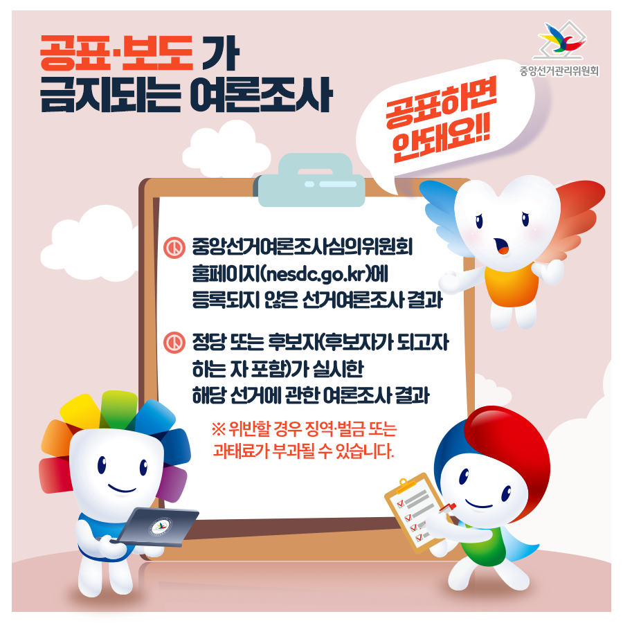 1. 중앙선거여론조사심의위원회 홈페이지(nesdc.go.kr)에 등록되지 않은 선거여론조사 결과