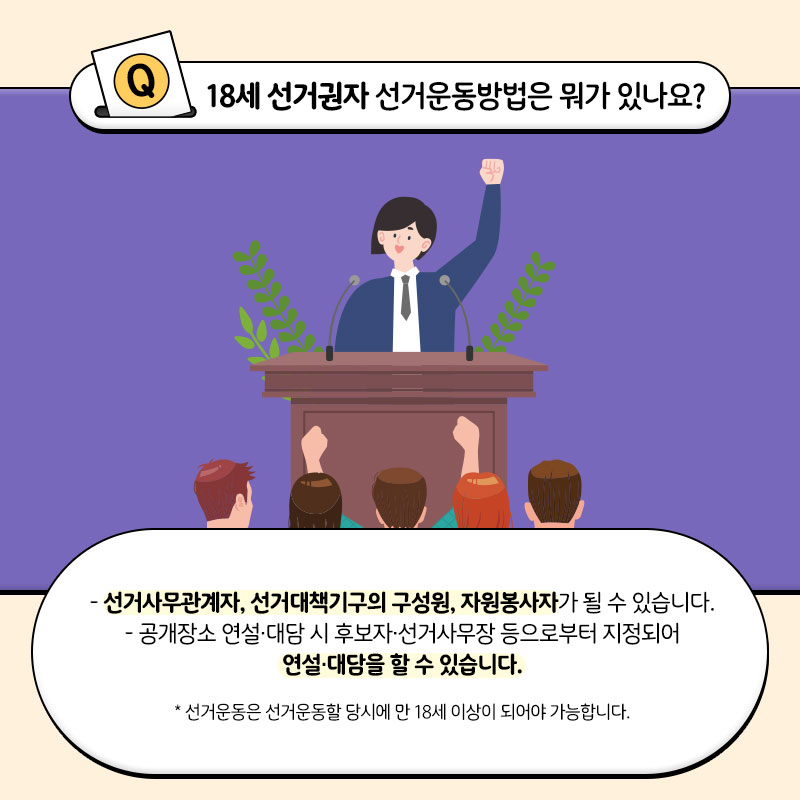*선거운동은 선거운동할 당시에 만 18세 이상이 되어야 가능합니다.