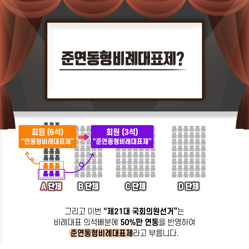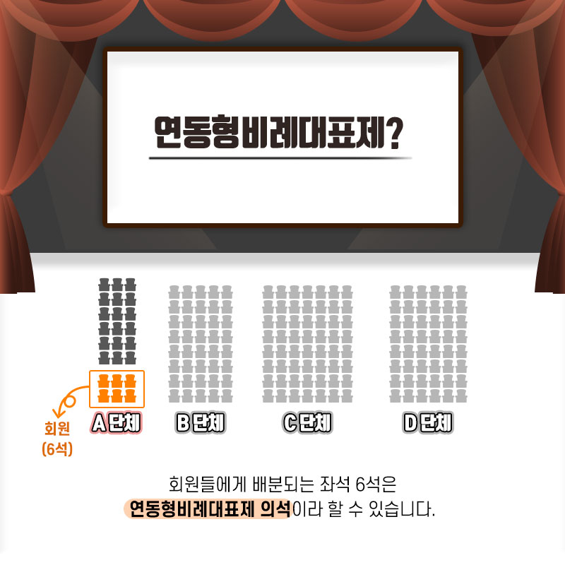 A단체 회원(6석)-연동형비례대표제 -> 회원(3석)-준연동형비례대표제