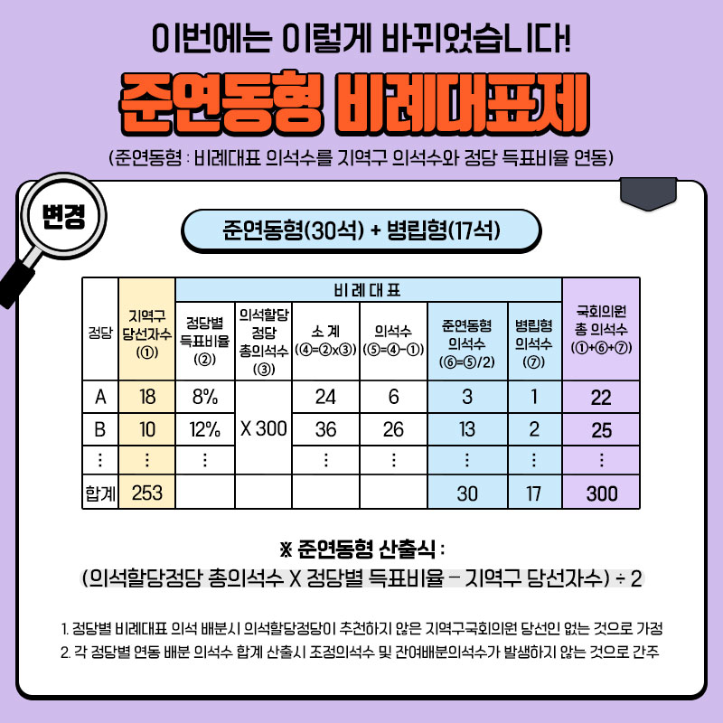 준영동형 30석 + 병립형 17석으로 바뀌었습니다!