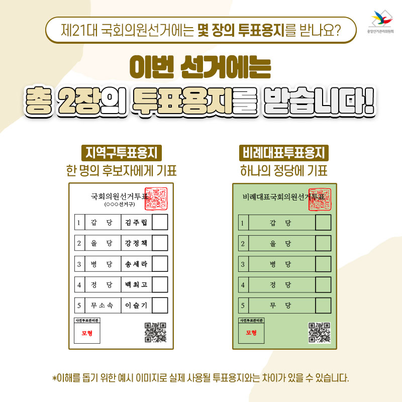 [사전투표]제21대 국회의원선거에서 투표용지를 몇 장 받게 될까요?