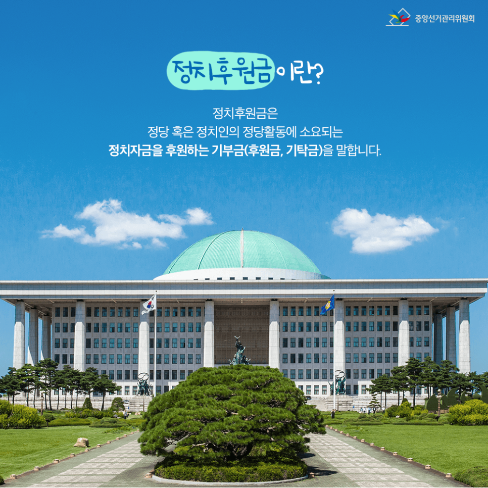 정치후원금은 정당 혹은 정치인의 정당활동에 소요되는 정치자금을 후원하는 기부금(후원금,기탁금)을 말합니다.