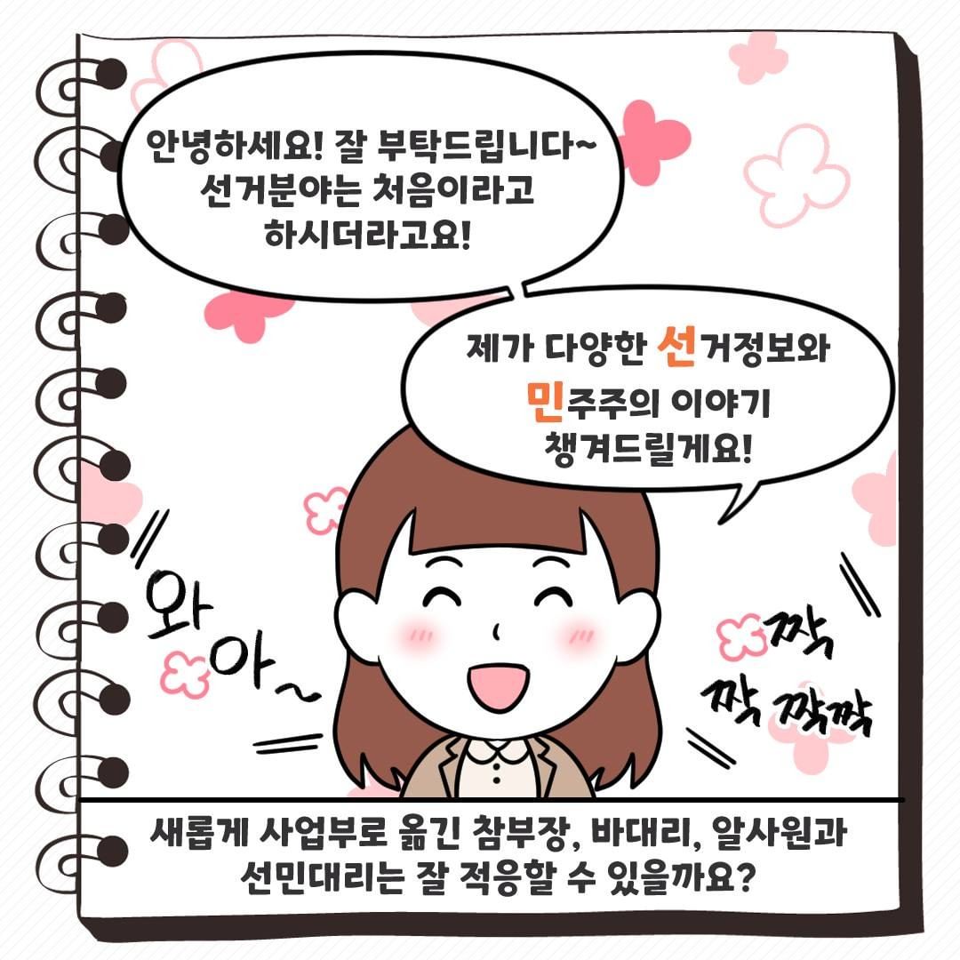 안녕하세요! 잘 부탁드립니다~ 선거분야는 처음이라고 하시더라고요!