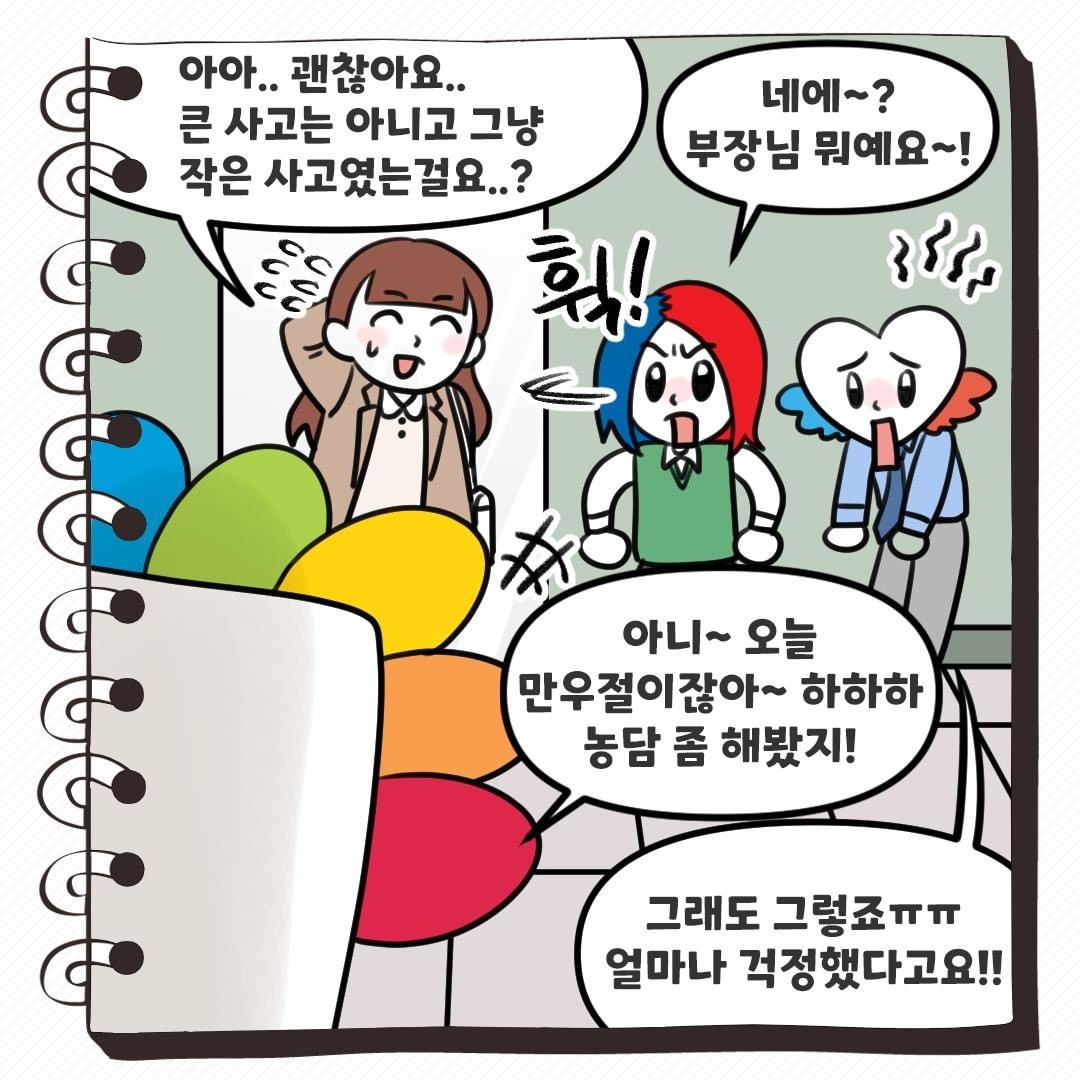 아아.. 괜찮아요.. 큰 사고는 아니고 그냥 작은 사고였는걸요..?