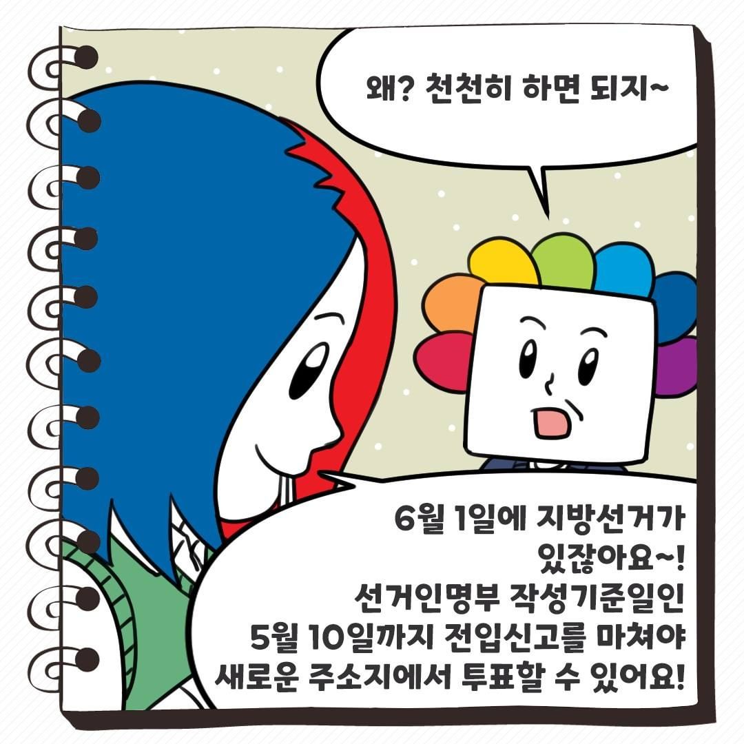 선거인명부 작성기준일인 5월 10일까지 전입신고를 마쳐야 새로운 주소지에서 투표할 수 있어요!