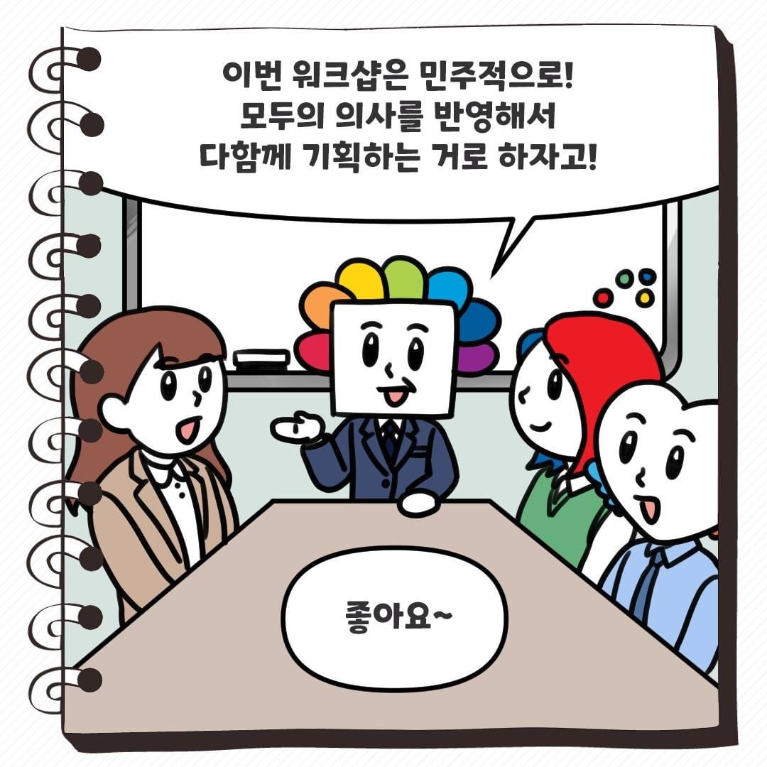이번 워크샵은 민주적으로! 모두의 의사를 반영해서 다함께 기획하는 거로 하자고!