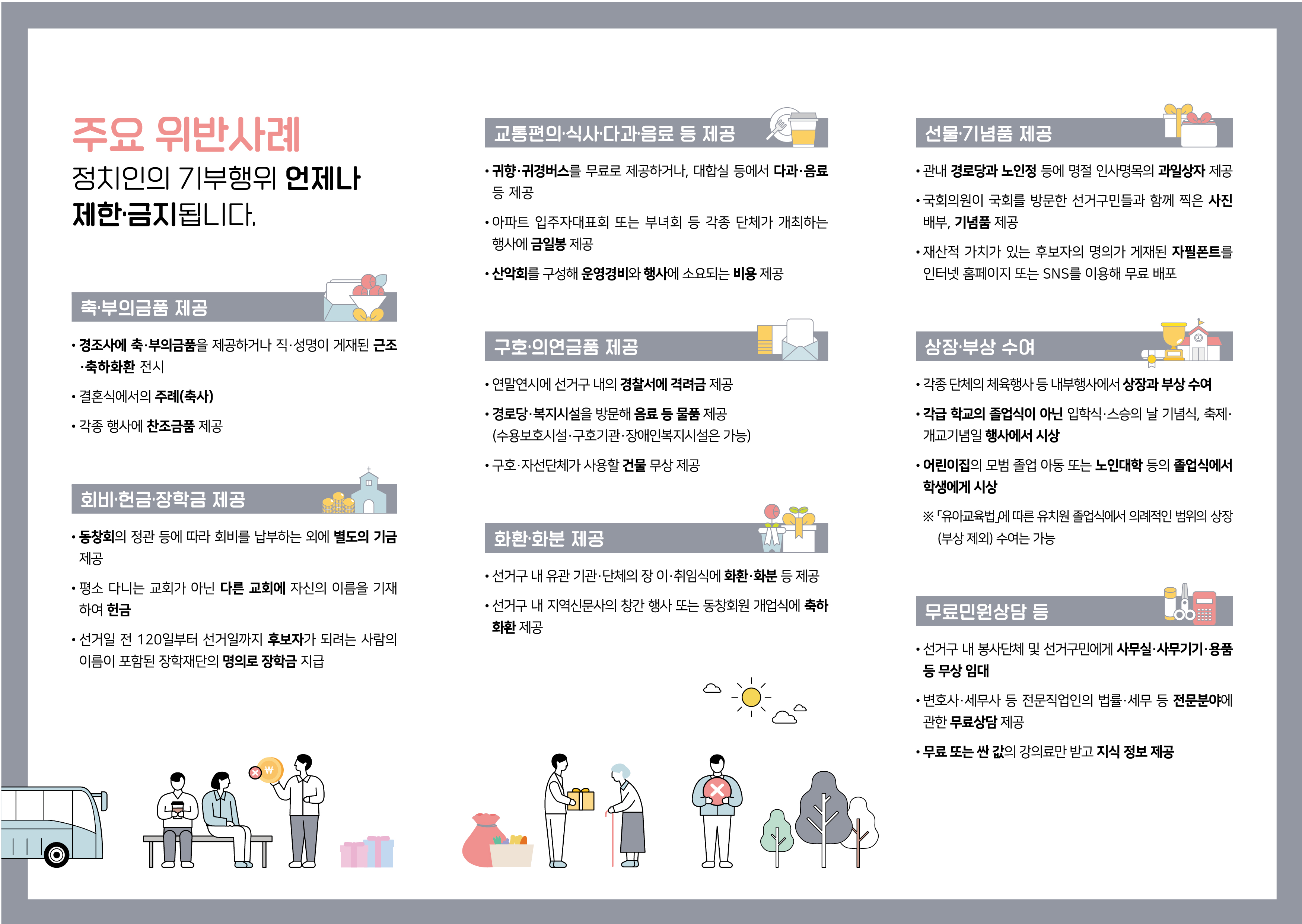 정치인의 기부행위 언제나 제한·금지됩니다.