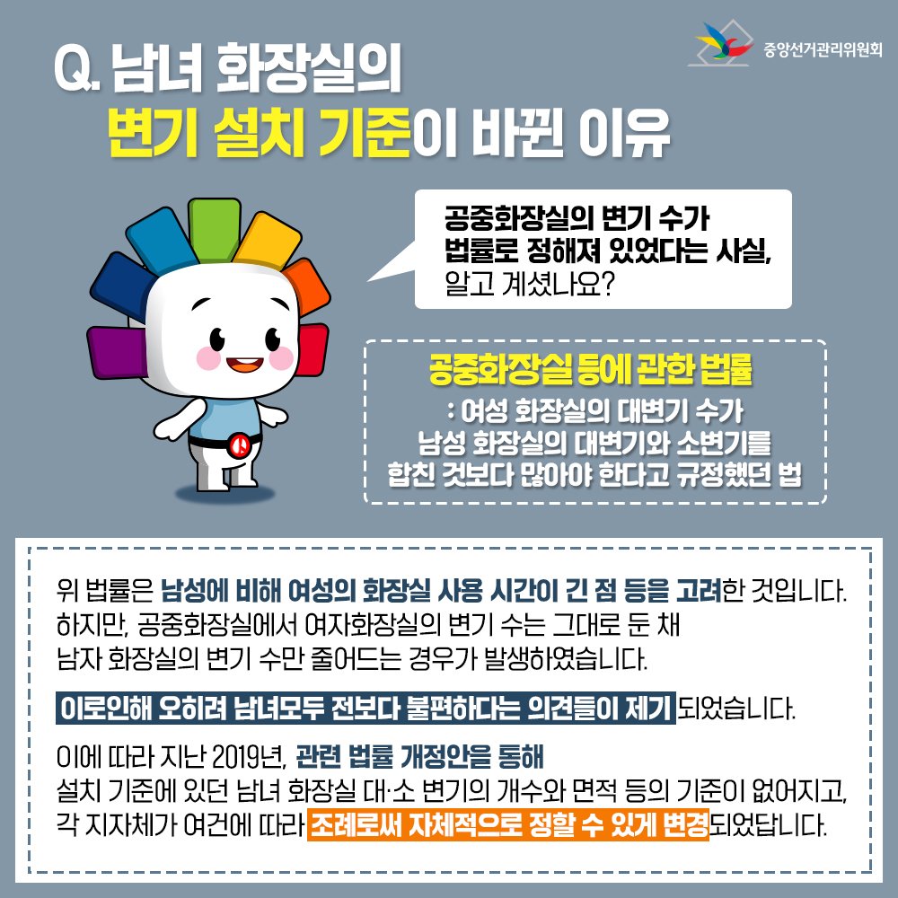"공중화장실의 변기 수가 법률로 정해져 있었다는 사실, 알고 계셨나요?"