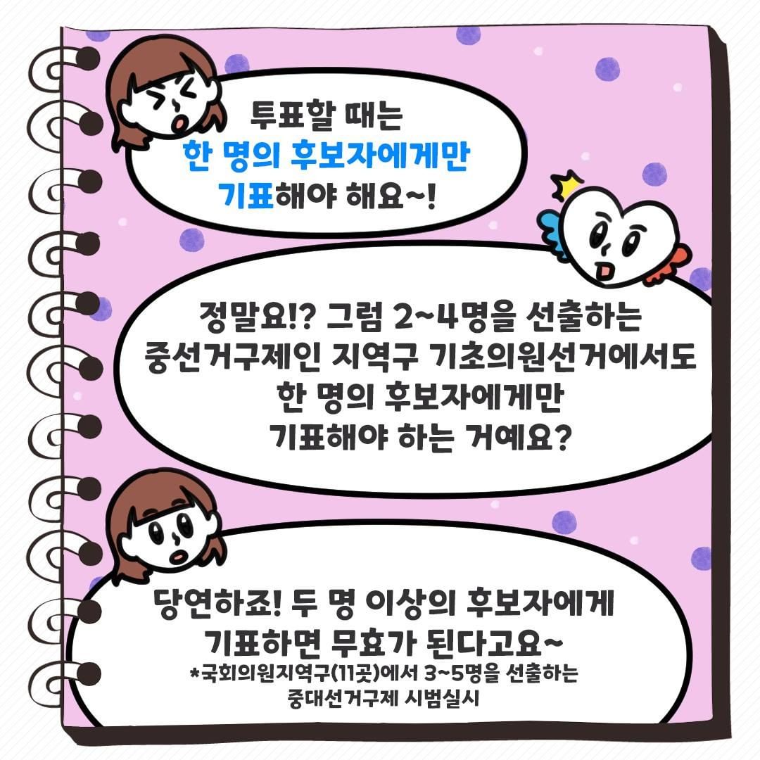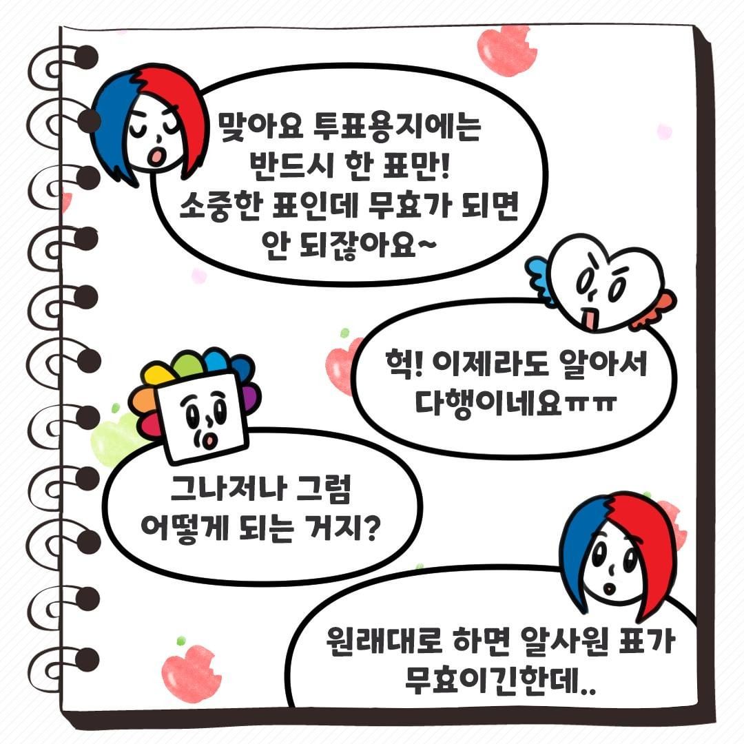 투표할 때는 한 명의 후보자에게만 기표해야 해요~!