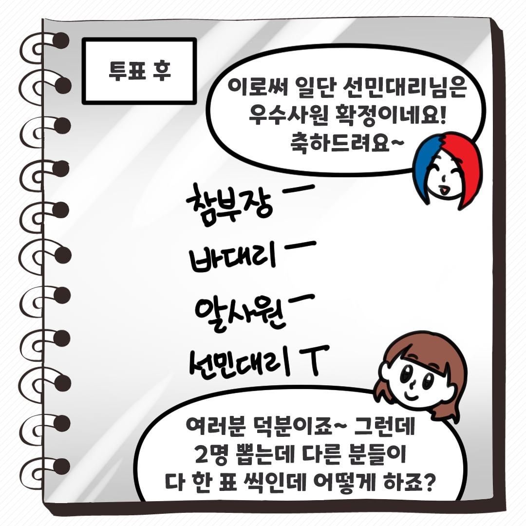 자~ 그럼 지금부터 우수사원 2명을 뽑을게!