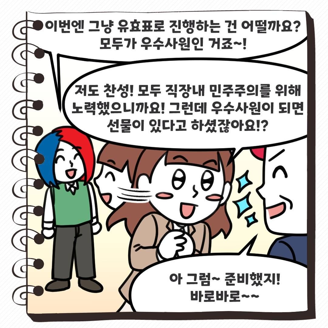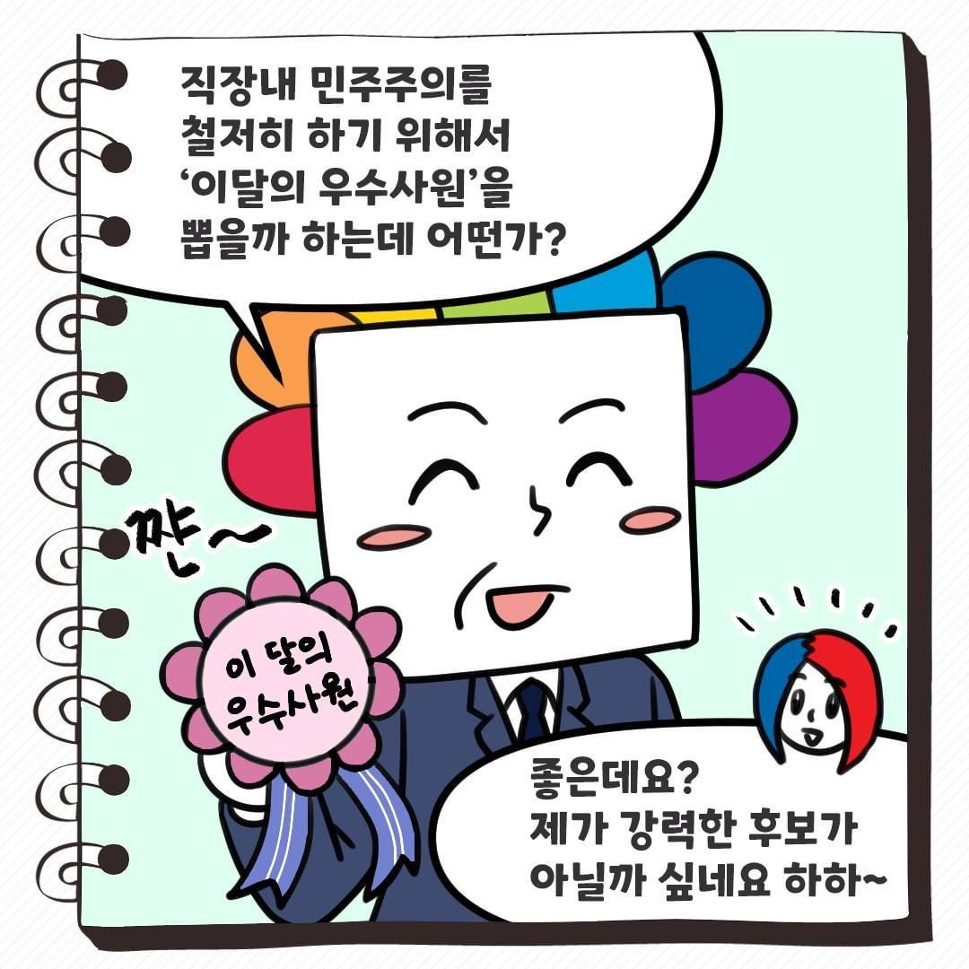직장내 민주주의를 철저히 하기 위해서 '이달의 우수사원'을 뽑을까 하는데 어떤가?