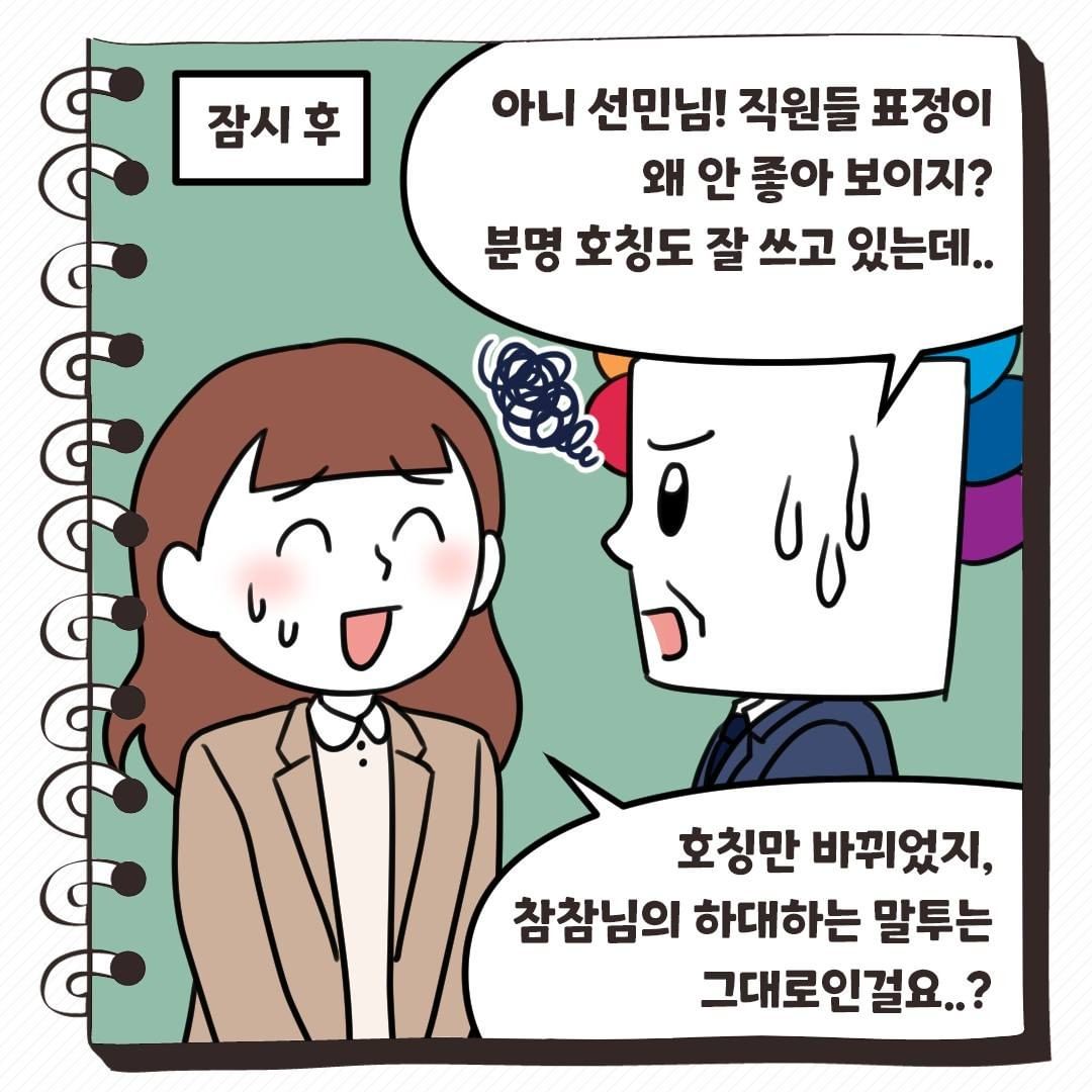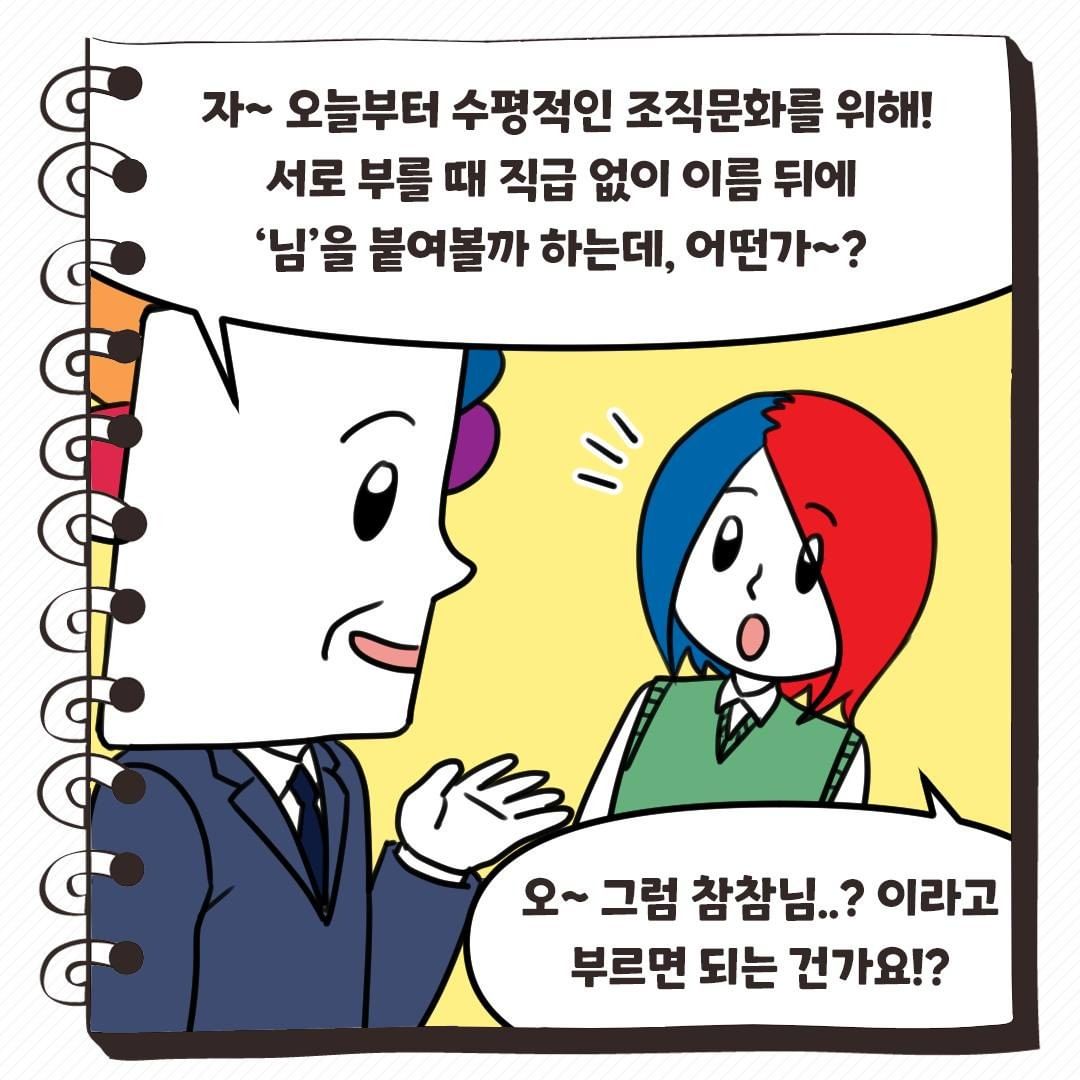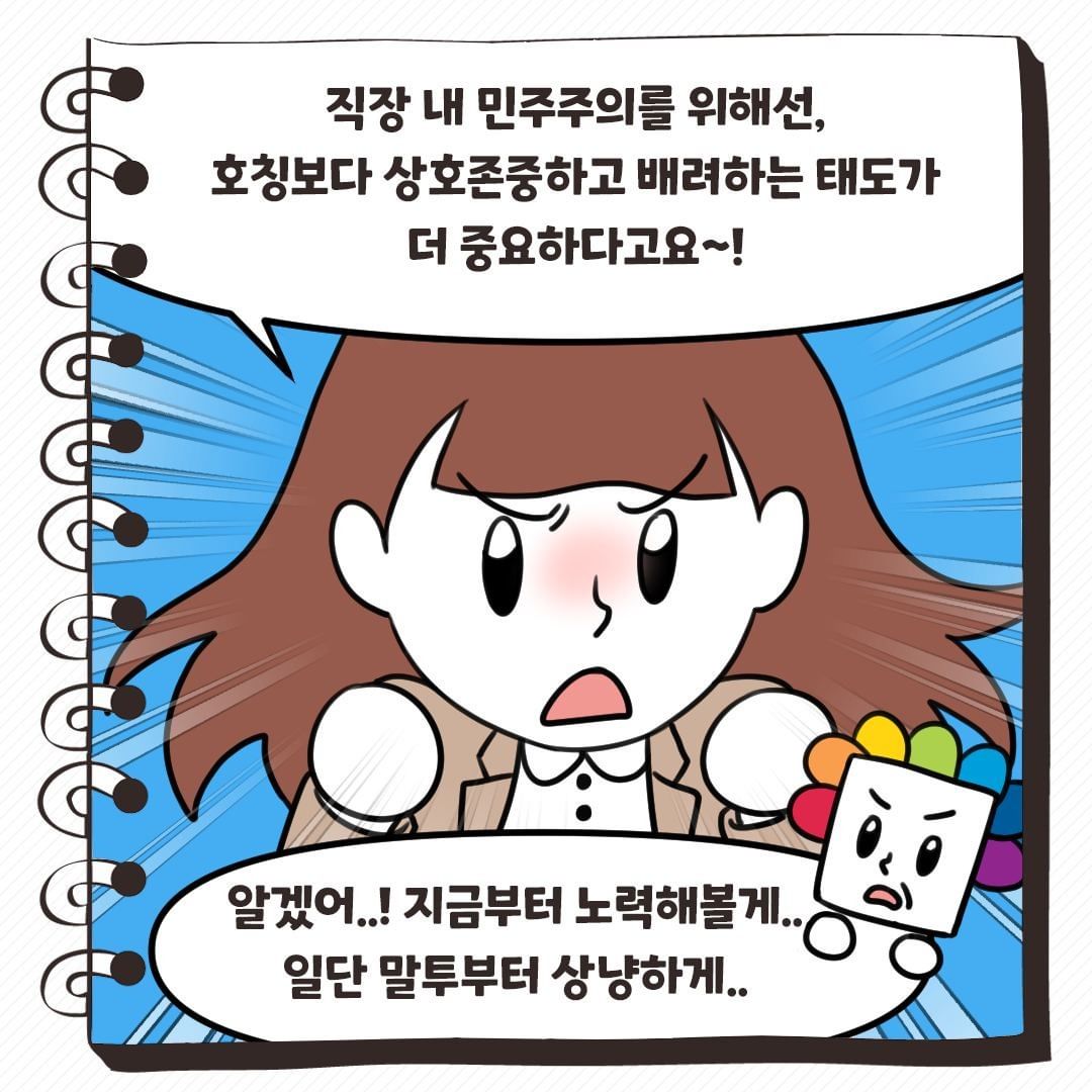 직장 내 민주주의를 위해선, 호칭보다 상호존중하고 배려하는 태도가 더 중요하다고요~!